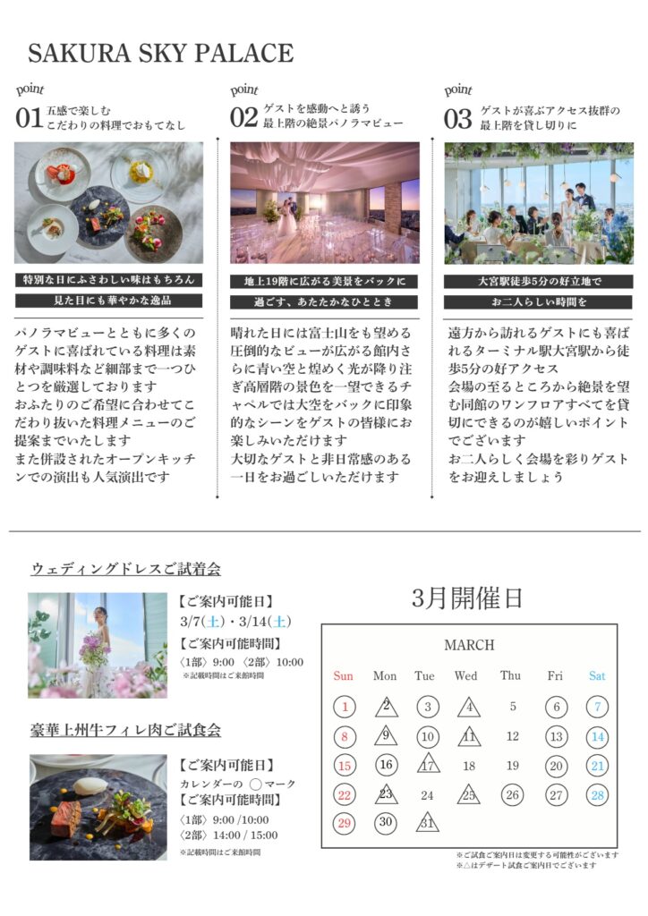 「SAKURASKYPALACE」では、結婚式をご検討中の皆さまへブライダルフェアを開催いたします。
